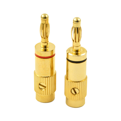 In stockGold Plated Speaker Banana Plugs Screw Type Audio Connector for Amplifiers Speaker Wire Home Theater (pair) Can accept bare wire or spades / Can a...