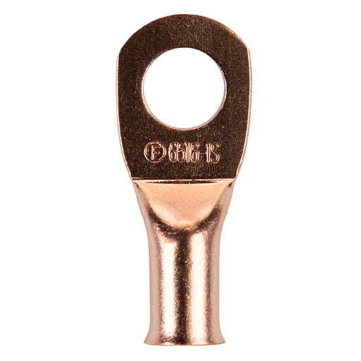 Low stockThe Install Bay CUR614 Copper 6 Gauge 1/4" Ring Terminal (25/pack) Copper Non-Insulated Tubular Lug 6 Gauge 1/4" Hole Ring Terminal 25/pack