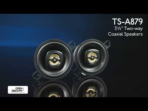 The TS-A879 is a 2-way coaxial 3-¬Ĺ" speaker. Its Injected Molded Polypropylene woofer cone stands up to the harsh in-car environment while providing natural-sounding tonal qualities with an OPEN & SMOOTH transition to the polyetherimide Tweeter. The TS-A879 is an A Series speaker. All A series speakers share the OPEN & SMOOTH design concept and are voiced to sound great together.