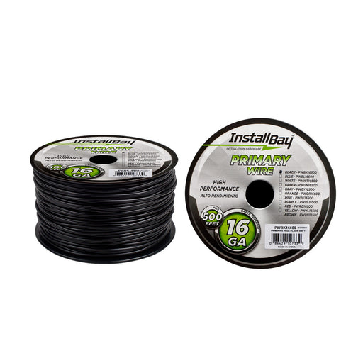 AgotadoThe Install Bay PWYL16500 Primary Wire 16 Gauge All Copper Black Coil - 500 ft Primary Wire 16 Gauge All Copper Black Jacket Coil of 500 feet