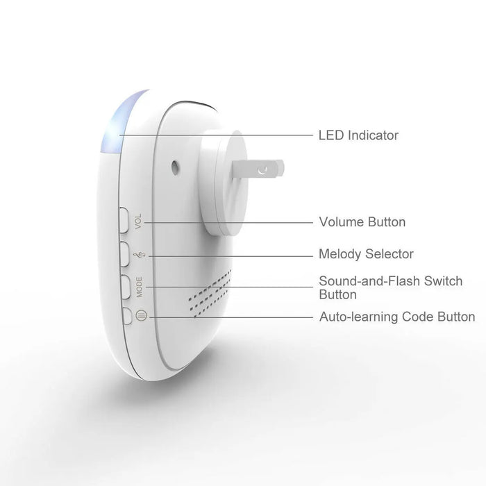 Plug and Play Two Doors Wireless Doorbell Chime 36 Melodies & 6 Adjustable Volume Levels