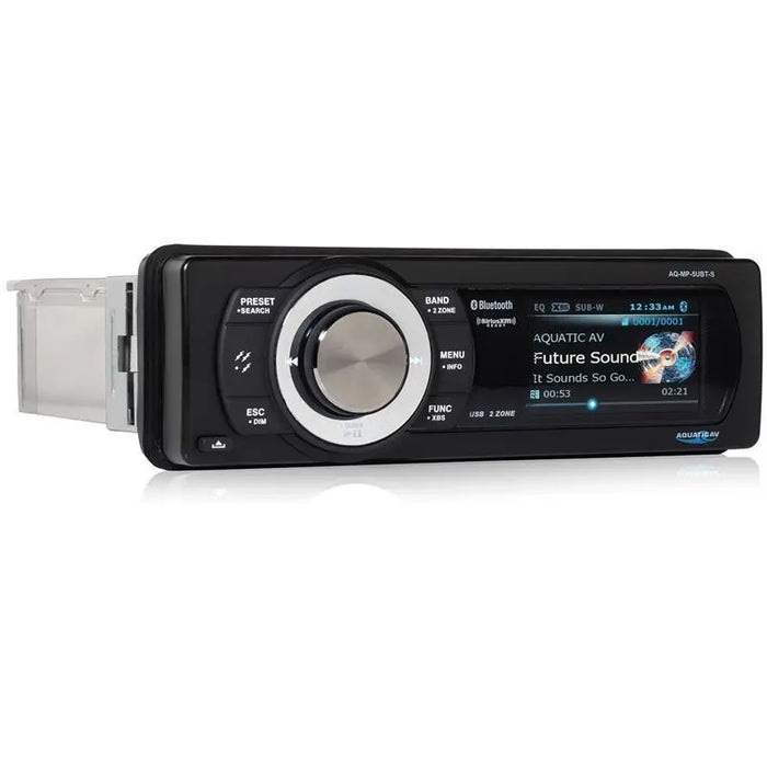 Aquatic Av AQ-MP-5UBT-S¬†high quality, Bluetooth, USB, SiriusXM Waterproof Marine Stereo.¬†SiriusXM Ready ‚Äď With a built-in SiriusXM receiver this marine stereo is ready to access over 170 satellite radio stations.¬†Requires SiriusXM-Connect Vehicle Tuner and subscription (sold separately).¬†Play music wirelessly via a Bluetooth enabled smartphone or MP3 device or via USB connection