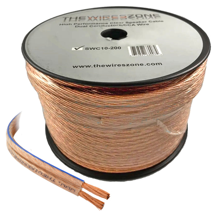 Car Home Audio Speaker Wire Transparent Clear Cable 10AWG 200ft 10/2 Gauge