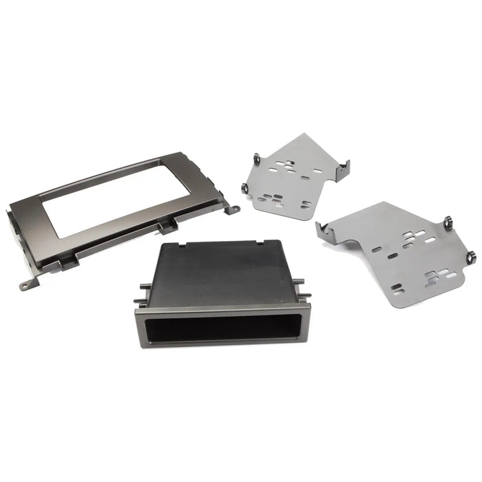 This stereo installation kit has been engineered to help you install either a 2” tall (Single-DIN) or a 4” tall (Double-DIN) aftermarket radio into the original vehicle dashboard. This dash kit makes radio replacement simple and comes with a pocket that is installed below the 2” radio to fill the extra space in the radio opening, which can be used for storage. The pocket is not needed when installing a 4” tall radio. The dash kit is painted silver to match the original look and feel of the vehicle’s dashboard. Installing an aftermarket radio can upgrade the sound quality and provide additional features the original factory radio couldn’t offer but requires this dash kit to make it fit.