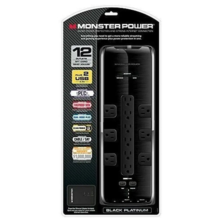 Monster Power 12 AC Outlets 2 USB 3.4Amp Ports and Coaxial In-Out Surge Protect