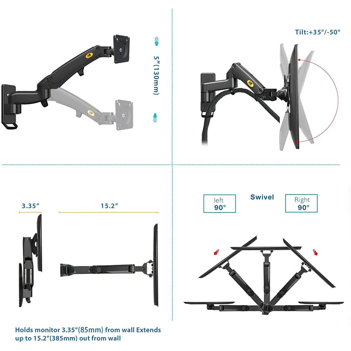 North Bayou F150 Full Motion Articulating Swivel Wall Mount Bracket for 17-27" 15.4 lbs TV