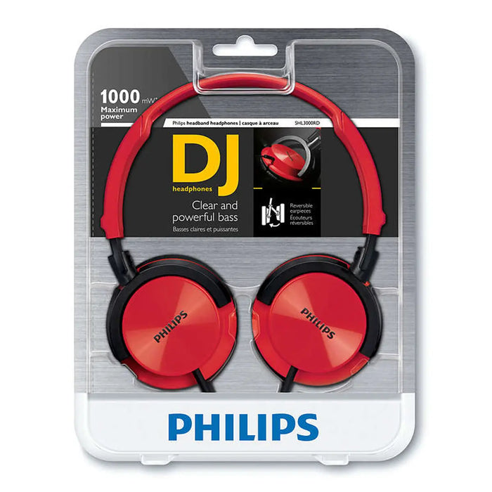 Philips SHL3000RD Adjustable On-Ear Headband Headphones with 75mm Cushioned Earpads
