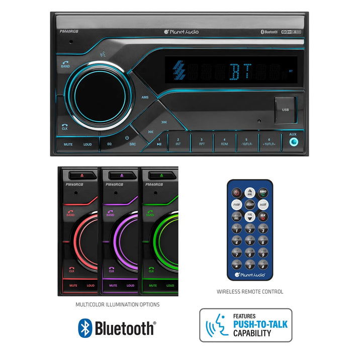 Planet Audio PM40RGB Double Din Car Stereo Bluetooth AM/FM Radio USB w/ Remote