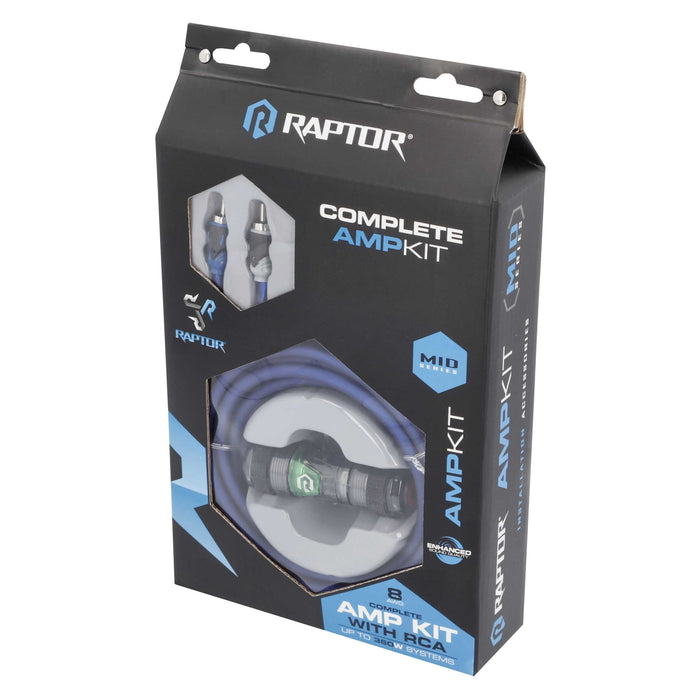 Raptor R4A8 MID SERIES 360W 8 AWG Amp Kit Spec Copper Clad Aluminum with RCA Cable