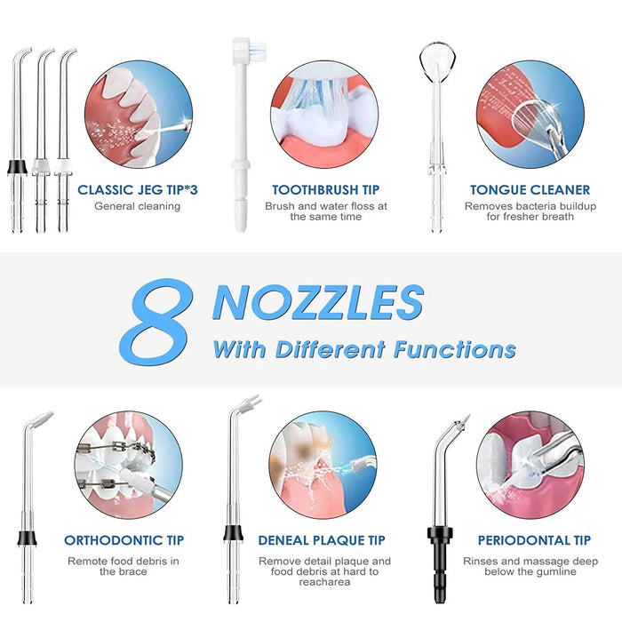 Water Jet Electric Dental Pick Flosser Oral Irrigator 600ml for Teeth/Braces 8 Tips 10 Adjustable Pressure