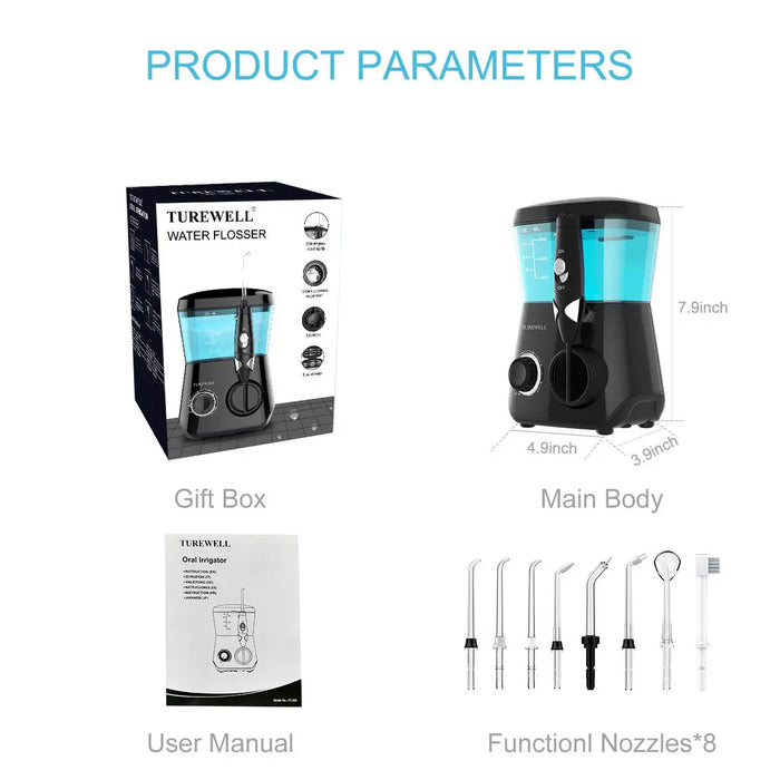 Clean Teeth More Deeply, Whiten Teeth Powerful & Improve Gum Healthy: compared with regular toothbrush, toothpick or flosser which can’t reach the hidden parts, but TUREWELL water oral irrgator up to 1700 times/min, water pulsation up to 30-125psi can deeply reach hidden parts, them remove 99.99% food debris and massage gum efficiently, prevent teeth stain, bad breath and other oral problems. It’s a perfect teeth cleaner for people with braces, implants, crowns or periodontal pockets.